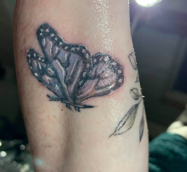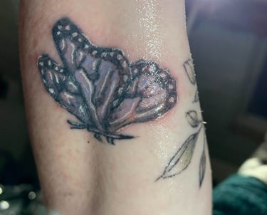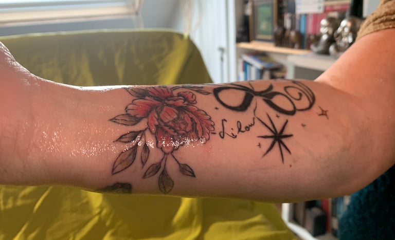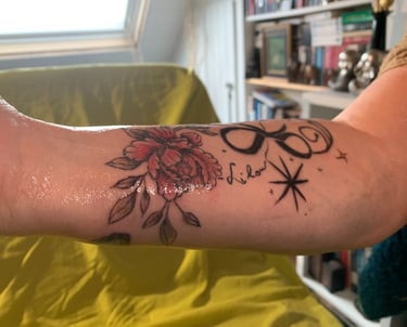 De la finesse d'un lettrage manuscrit à la complexité de textures plus organiques, mon portfolio reflète mon exploration constante du tatouage. C'est un mélange de rigueur technique — héritée de mes années d'aérographe — et de sensibilité humaine.